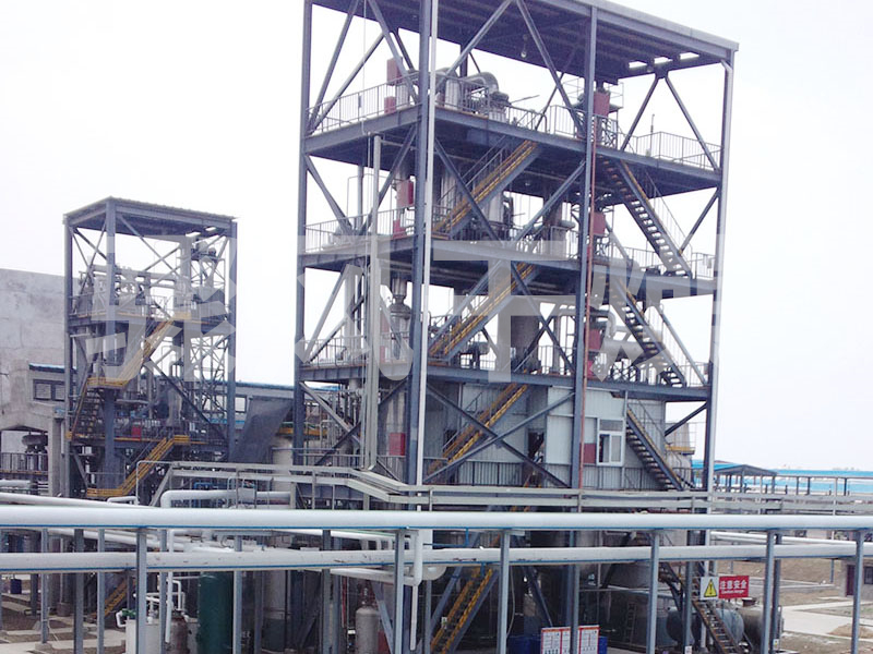 经过预热到设定温度的物料从刮板蒸发器物料管口加入蒸发器,在旋转刮板运动的离心力作用下,物料被甩到周围壁上,壳程为饱和水蒸气或导热油加热,由于刮板与换热面距离很近,一般为0.5~1.5 mm,因此传热效率很高,停留时间短,约5-15秒,特别适合热敏性物料的蒸发浓缩。浓缩液经底部排出系统,如若有结晶需求可以考虑浓缩液循环蒸发形式;二次蒸汽从上部排出蒸发器,在冷凝器中冷却成液相,需要真空操作时则在凝水罐上接入真空系统。