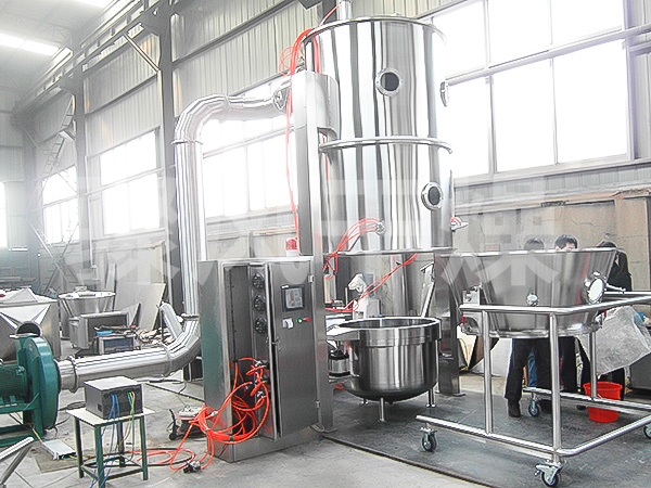 沸腾制粒机又称一步造粒机,它是利用粘合剂的粘结作用,固体粉末间相互架桥、团聚,从而逐渐形成颗粒。