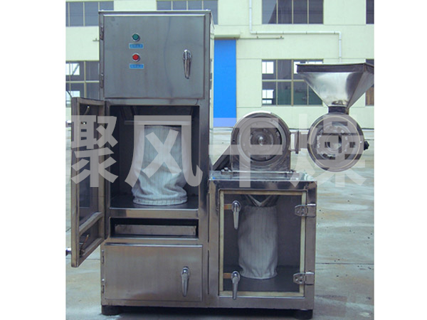 粉碎物可直接从磨腔中排出,经出料口出来,一般的物料经过粉碎后要经过棉布袋来收集,粉碎后的物料收集在袋内,空气则从布袋的细小孔眼出来,不会将细粉排出,从而起到不浪费,不污染的效果。粒度大小由更换不同目数的筛网决定。