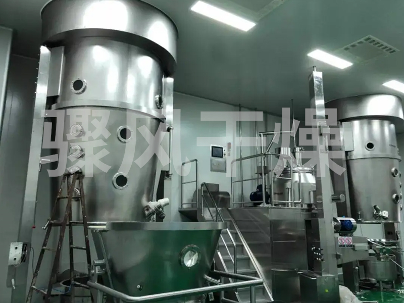 物料粉末粒子在原料容器(流化床)中呈环形流化状态,受到经过净化后的加热空气预热和混合,将粘合剂溶液雾化喷入,使若干粒子聚集成含有粘合剂的团粒,由于热空气对物料的不断干燥,使团粒中水分蒸发,粘合剂凝固,此过程不断重复进行,形成均匀的多微孔球状颗粒。